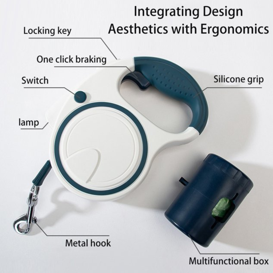 Are you tired of juggling a flashlight, poop bags, and a leash during your evening walks? Simplify your routine and enhance safety with our Retractable LED Dog Leash, a multifunctional tool designed to give you total control and visibility in one ergonomic device.