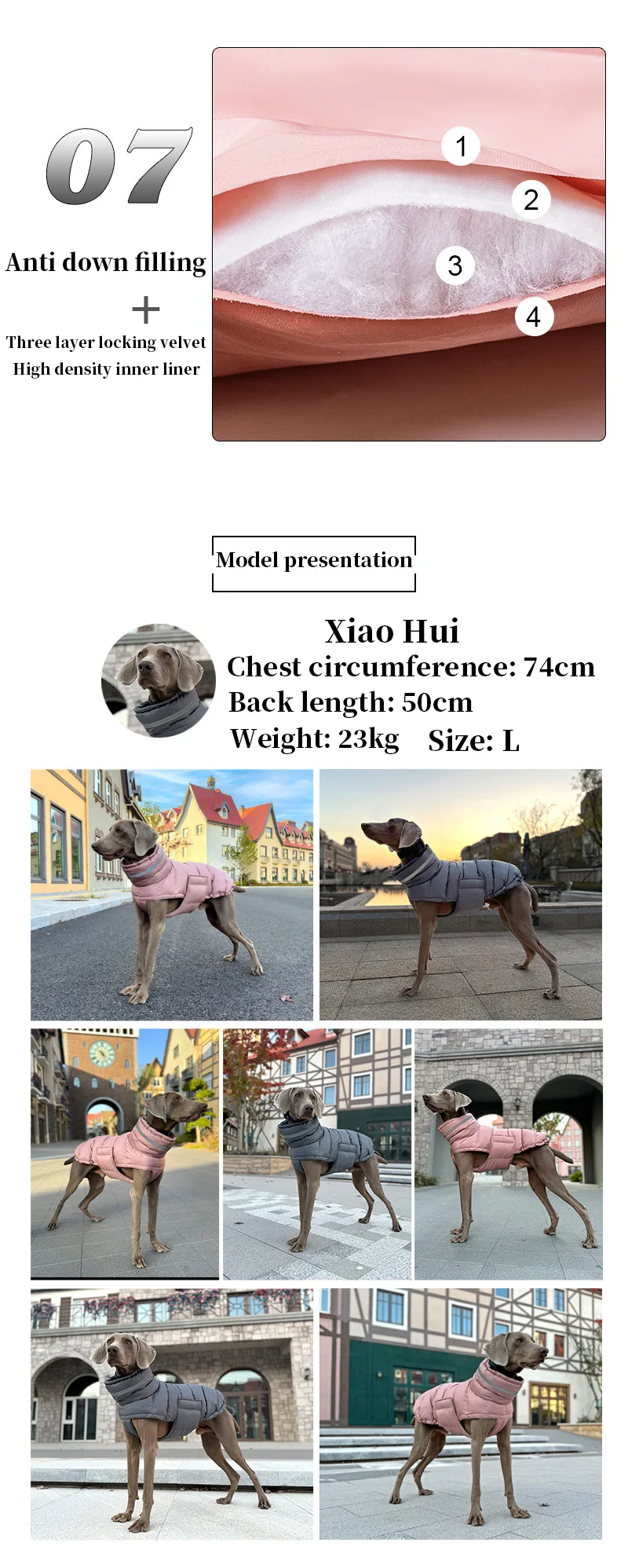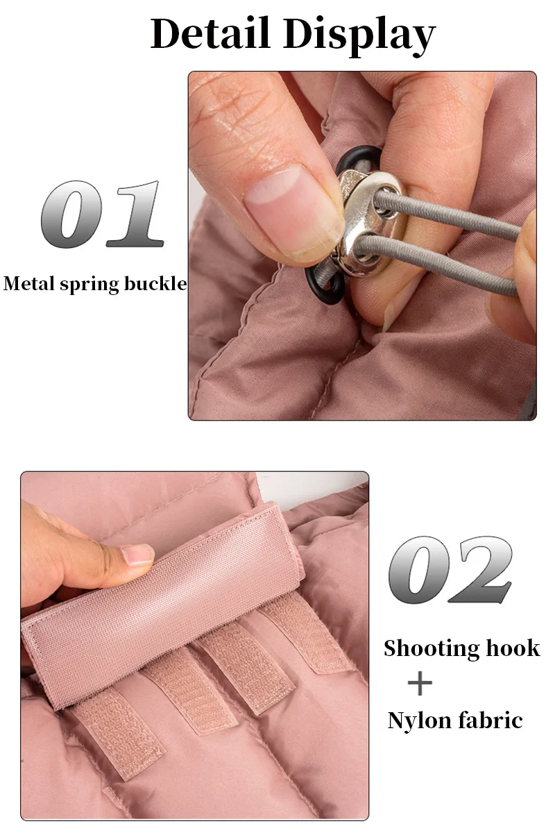 2. High Neck Thermal Snood: The integrated high-neck collar with an adjustable drawstring provides superior protection against freezing wind and snow, ensuring your dog's neck and ears stay warm and dry.